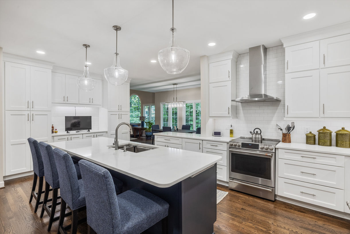 Award-Winning Open Concept Kitchen Remodel: Crisp White & Bleu Cabinetry Gallery